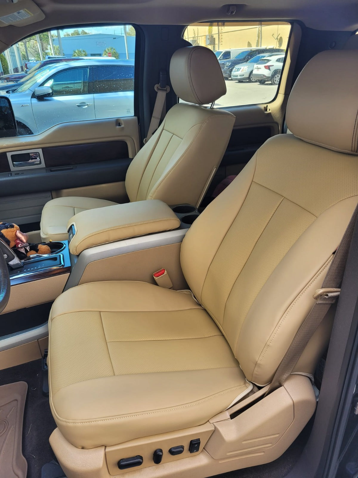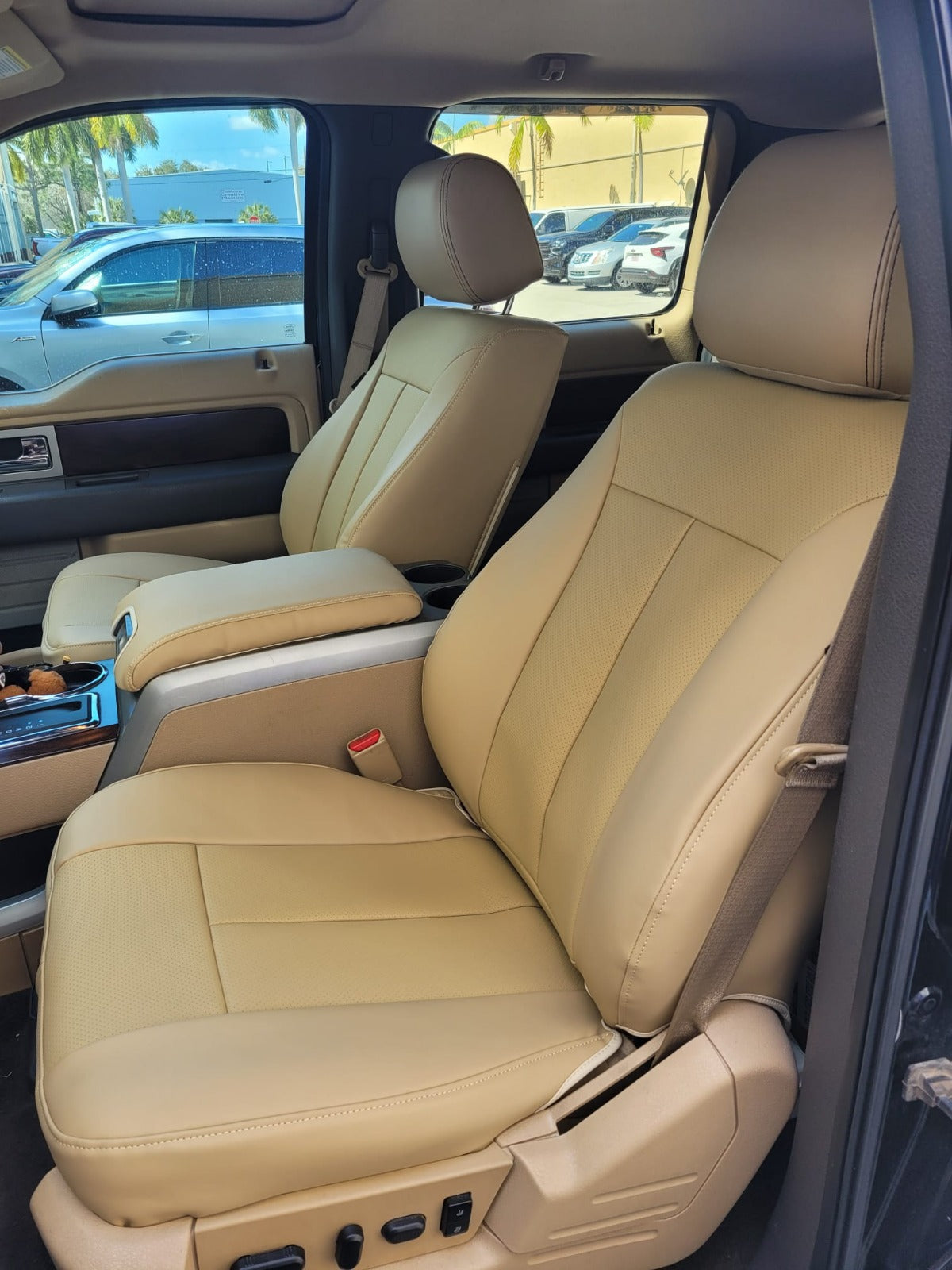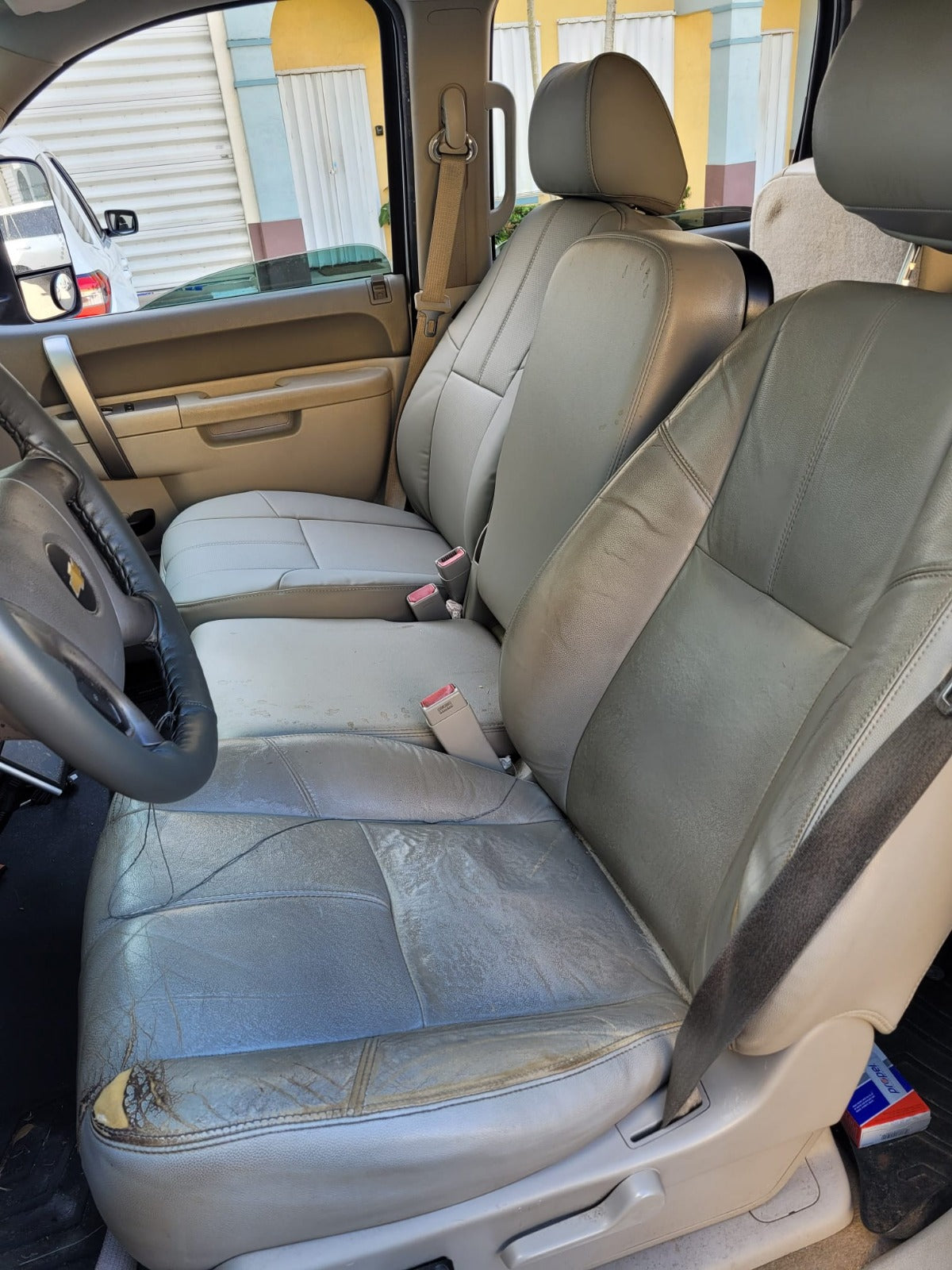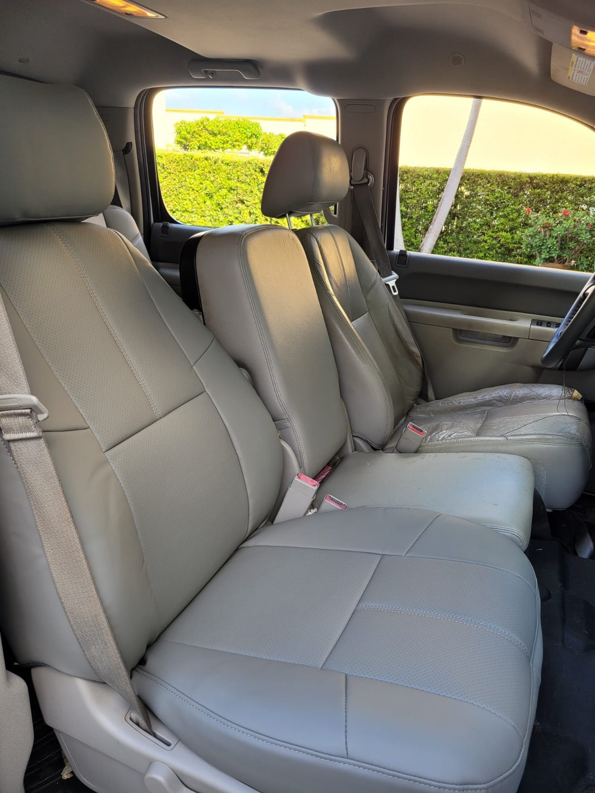 Nappa Leather Before and after driver side = Original fabricLeather conversion kit original Fabric to Nappa Leather available for most cars